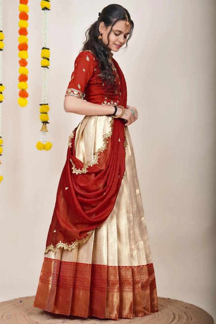 | Name : | KPW 331 traditionl Kanjiveram Silk Zari Lehanga |