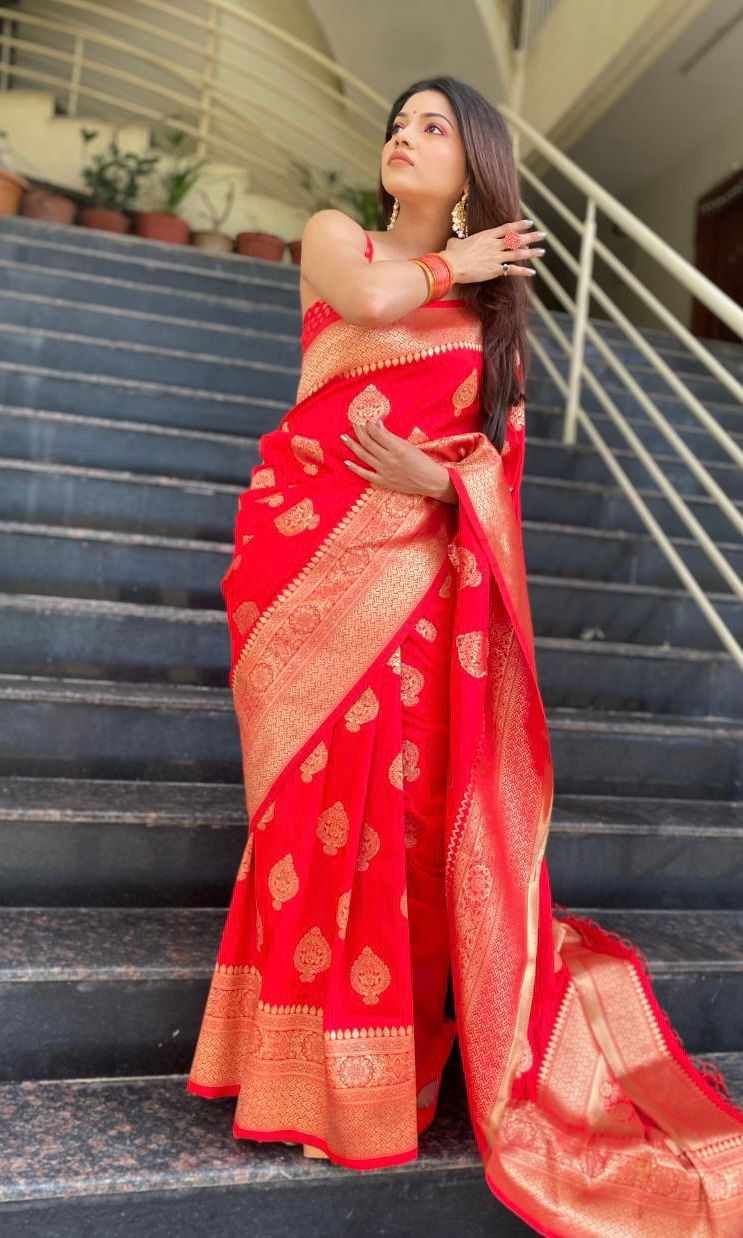 | Name : | MF 1610 RED SOFT LICHI SILK SAREE |