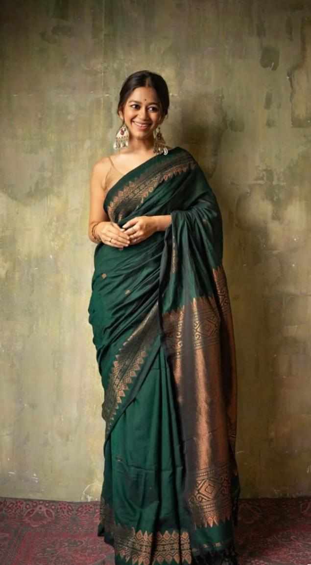 Reviews for MF 1950 GREEN BANARASI SOFT LICHI SILK SAREE
