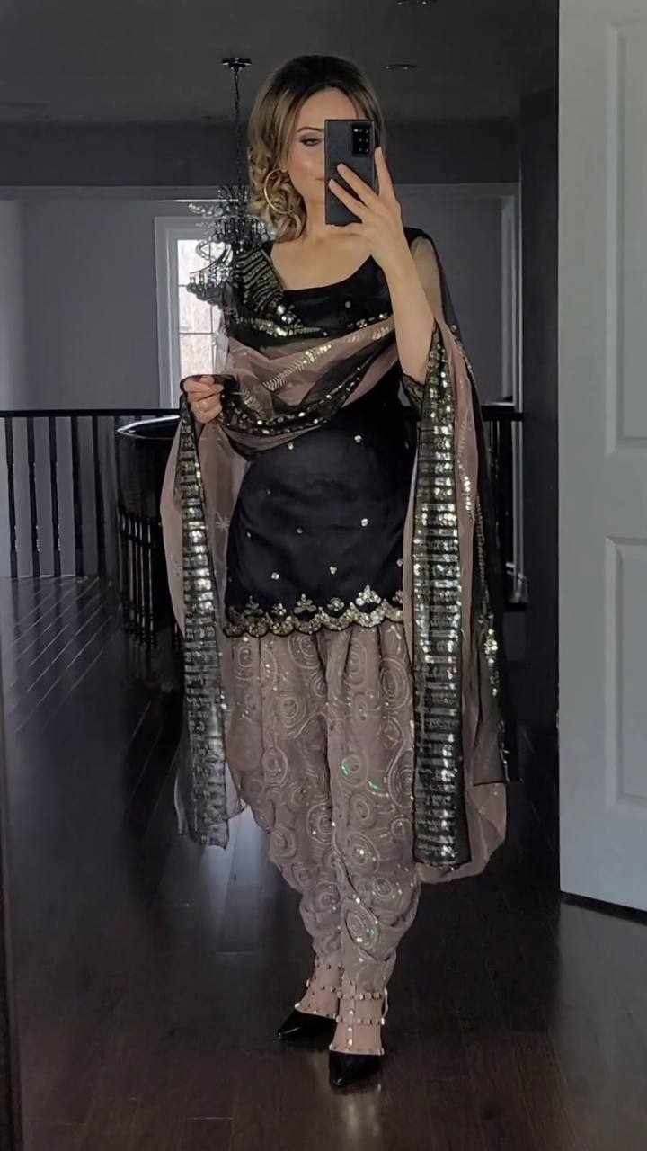 Dhoti Salwar: Faux Georgette With Embroidery 5mm Sequence Work.