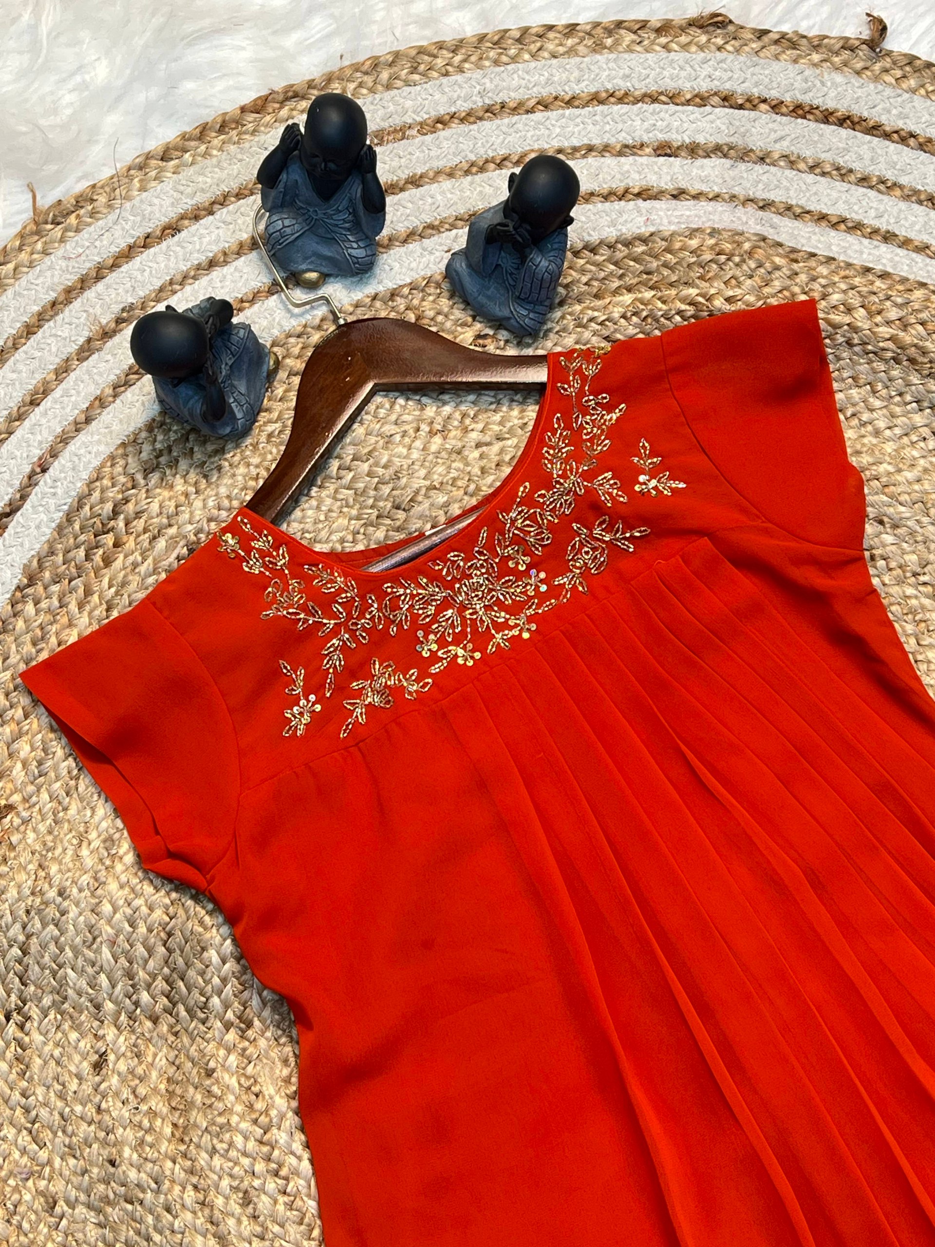 WM13 ORANGE BLOOMING GEORGETTE DESIGNER KURTI